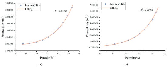 - The permeability demonstrates an exponential relationship with porosity, when comparing the radial permeability and the longitudinal permeability under the same porosity, a difference of approximately one order of magnitude is observed;