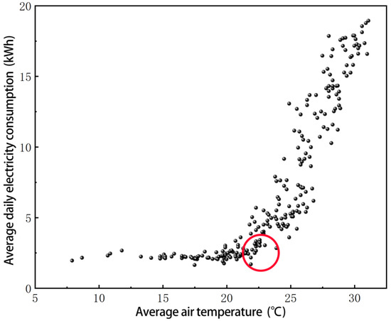 - This article proposes a statistical algorithm for calculating the balance point temperature and identifies the balance point temperature of a residential building in Xiamen, China as 22.2 °C. Significant differences in the correlation between temperature and building energy consumption exist around this balance point temperature.