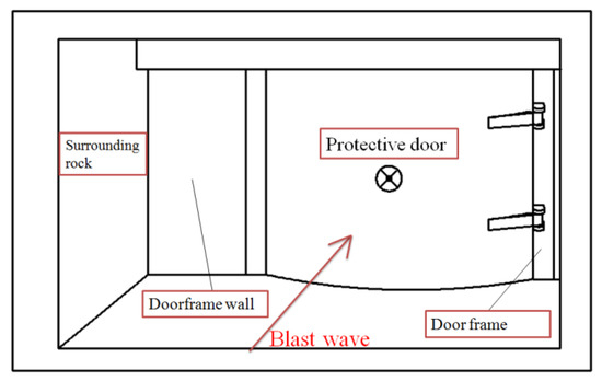 Li et al. [16] carried out a dynamic characteristic analysis of a double steel-clad concrete-filled arched protective door and calculated the intrinsic frequencies and corresponding vibration patterns of the door under various boundary conditions while carrying out a spectral analysis of the overpressure time-history curve of the blast shock wave in front of the door. They found that the shock wave energy was concentrated in the low-frequency interval, covering the main vibration frequencies of the door. Chen et al. [17] investigated an arched panel with a double-layered structure and numerically studied its blast load resistance and energy absorption capacity using the finite element software LS-DYNA 971, showing that this arched panel structure had a higher blast load resistance than other forms of panels. Chen et al. [18] used AUTODYN to determine the blast load on a protective door in an arched reinforced concrete test. They compared the dynamic response characteristics of the door under single and multiple loads with the test, concluding that the dynamic response of the door was mainly influenced by the non-linear contact between the door and the frame and the strain rate effect. Guo et al. [19] used ABAQUS to study the dynamic response characteristics of SCCFST protective doors under the effect of explosions, and the analysis concluded that the steel pipe inside the doors contributed greatly to the enhancement of structural resistance, while the effect of increasing the wall thickness of the steel pipe and the strength of the concrete was not obvious.