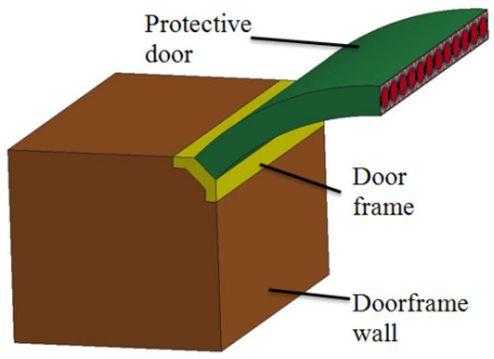 Protective doors are important building components used to ensure the safety of personnel and property inside a building. Understanding the blast damage mechanism of protective doors and determining their limited load-bearing capacity are critical to their design and application. The available literature indicates that flat and arched doors have been studied more extensively. In order to improve the blast resistance of protective doors, several researchers have conducted experimental studies and numerical analysis using software such as ANSYS and ABAQUS to optimize the structural system and form of the doors [1,2,3,4]. Meanwhile, novel door materials or filling materials are being used to improve door performance [5,6,7,8,9,10,11]. Compared to flat doors, arched doors offer better protection for the same span and weight, are better suited to withstand dynamic impact loads, and have significant advantages in blast resistance [12]. Steel-clad concrete-filled steel tube (SCCFST) structures exhibit excellent load-bearing performance, capitalizing on the advantages offered by steel and concrete materials. Additionally, these structures are easily processable. Hence, they can be widely applied to national defense and human defense engineering [13,14,15]. Considering these attributes, a satisfactory protective effect is expected to be achieved, and this study is a step in that direction.
