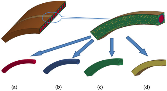 Schematic diagram of the components of a cell of the protective door. (a) Inner concrete (b) Steel tube (c) Confined concrete (d) Surface panel and its separators.