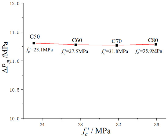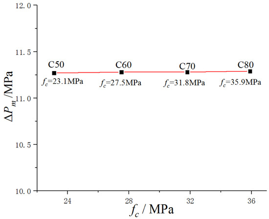 It can be seen from Figure 17 that as the strength grade of the confined concrete increases from C50 to C80, the load-bearing capacity of the protective door also rises slowly, but has been maintained at about 11.3 MPa, and the change is not obvious.