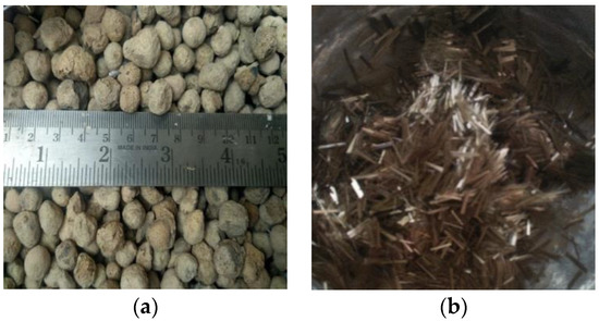 Details of the materials used. (a) Sintered fly ash aggregate. (b) Basalt Fibre.