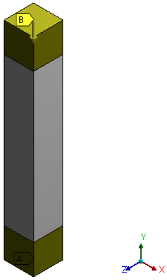 To constrain the model and yield a single solution, displacement boundary constraints were applied at the faces to guarantee that the created model behaves similarly to the experimental column. The boundary condition was simulated with columns fixed at both ends, as shown in Figure 6.