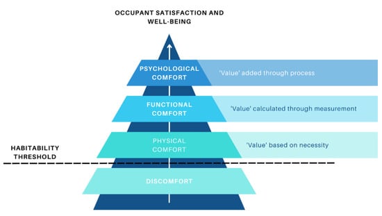 The workspace comfort or workability pyramid. Source: Adapted from Vischer [] (by the corresponding author).