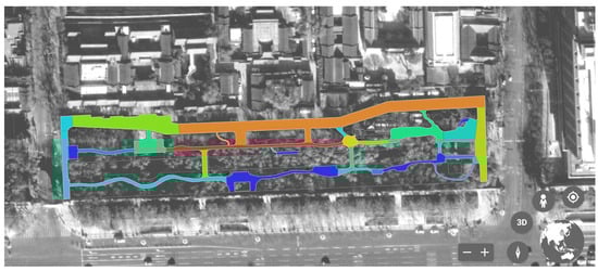 According to the research of University College London, public space in urban areas can be represented as convex maps in which streets and squares are treated as convex spaces and adjacent accesses as links []. The integration degree is used to describe the distribution degree of each node in the space system. It reflects the total steps required to traverse other points in the space from one point. The higher the integration degree is, the better the spatial accessibility is and vice versa. According to the different topological steps, the degree of integration can be divided into global degree of integration and local degree of integration. Through a study of the crowd distribution in the park, it was found that the accessibility of the park space is positively related to the attraction of the place to tourists.