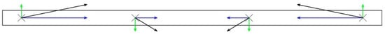 When describing the first design diagram, we ignored the fact that the self-tapping screws (as well as the forces arising in them) have an eccentricity with respect to the neutral axis of the reinforcing core and the PVC profile. Therefore, these forces were considered to be applied centrally. The forces acting between the PVC profile and the reinforcing core in the attachment points were decomposed into axial and transverse components (