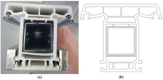 All theoretical and experimental research within the scope of this study were performed for PVC windows made on the basis of the VEKA Softline 70 profile system with a profile width of 70 mm which represents the most common type of PVC window systems used in the Russian Federation (with five chambers). Their design is distinguished by an almost symmetrical arrangement of the reinforcing steel core with respect to the PVC profile and an equal number of air chambers on both sides of the reinforcing steel core. Therefore, as a first approximation, it can assume that