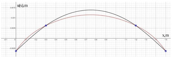 Figure 3). If one ignores the fact that there may be a certain gap between the PVC window profile and the reinforcing steel core, which must be overcome to make contact, then the second design diagram becomes equivalent to the first with 3 connection points between the PVC window profile and the reinforcing steel core. The presence of the initial gap between them will increase the final deflection, because the PVC window profile at the moment of contact will already be in a bent state, but since the length of the PVC window profile is many times greater than the width of the gap, its impact on the final deflection can be considered by Equation (1).