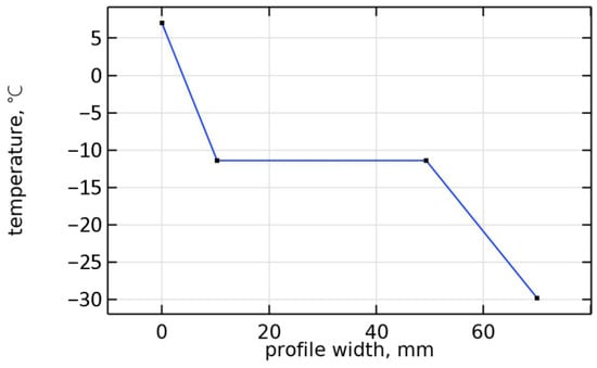 Then, knowing the values of the outside and inside air temperatures, as well as the heat transfer coefficients of the outer and inner surface of the PVC window profile, one can plot the graph of the temperature distribution over its cross section.