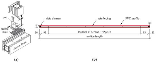 In both design diagrams, the steel reinforcing core was initially considered in relation to the PVC window profile as rigid body (due to the fact that the rigidity of the steel reinforcing core greatly exceeds the rigidity of the PVC window profile). Further, the bending stiffness of the reinforcing steel core was taken into account by introducing the transverse joint flexibility coefficient into the calculation.