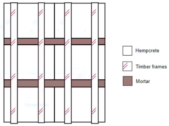 The hempcrete blocks are easily stacked on top of each other separated by mortar, as they weigh only one-seventh of concrete. During construction, the blocks should be protected from any rising water; therefore, they should be designed with enough space at the base of the wall for water to run off []. The blocks can easily stand alone as they are self-supporting; however, timber frames are commonly used.