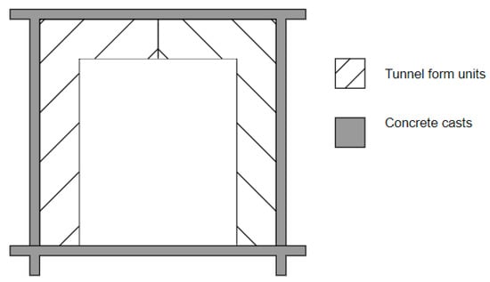 - The Concrete Centre. Tunnel Form. Available online: https://www.concretecentre.com/Building-Solutions/Walls/Tunnel-form.aspx (accessed on 23 March 2023).