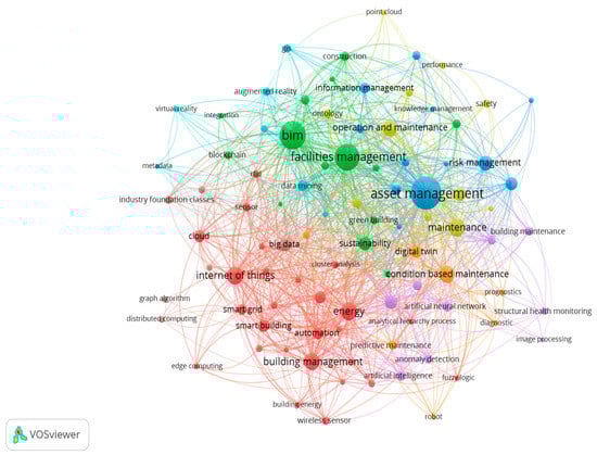 In conclusion, facilities management represents the longest phase of an establishment’s life cycle, and the highest cost producer accounting for about 85% of the life-cycle cost [,]. Consequently, several academics have recommended improving this sector by implementing intelligent procedures and technologies [,]. Thus, facilities management has been gaining popularity as an area of study in the past decades [,]. However, the construction sector is still argued to have a slow pace of digitization in asset management terms [,,]. Additionally, with data being the most important requirement for efficient operation and maintenance, facility managers still face information and communication challenges while implementing existing systems [,]. As a result, managers spend significant time and effort gathering information from various combinations of digital information and hardcopy documents []. Indeed, there is a need to stay on top of new innovations and gain a deeper understanding of the current state of research in the field of smart and digital facilities management [,,]. Consequently, the research efforts and the trends of smart technologies implemented in facilities management after 2012 were analyzed to gain a deeper understanding of the current state-of-the-art research in this field. In addition, the research identified the most influential authors, countries, sources, and research topics, as well as research gaps and areas for future exploration. The Scopus database was utilized as the main source of information for the literature search, where a total of 7236 publications were gathered for analysis. Moreover, VOSviewer version 1.6.18. were used as the analysis software for the quantitative trend analysis.