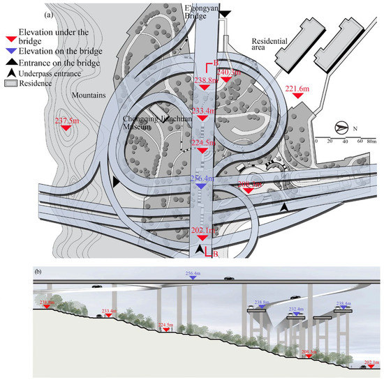 - Zhang, S.J. Research on the lower space of Chongqing riverside viaduct from the perspective of environmental behavior—Taking the space under the Niu jiaotuo bride as an example. Chin. Overseas Archit. 2018, 10, 118–121. [Google Scholar]