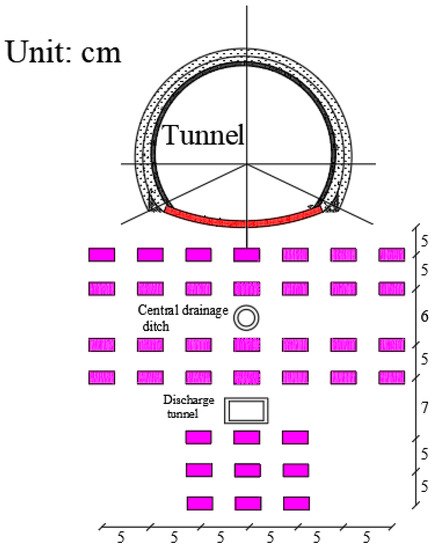 Layout of temperature sensors, central drainage ditches, and anticold drainage tunnels.