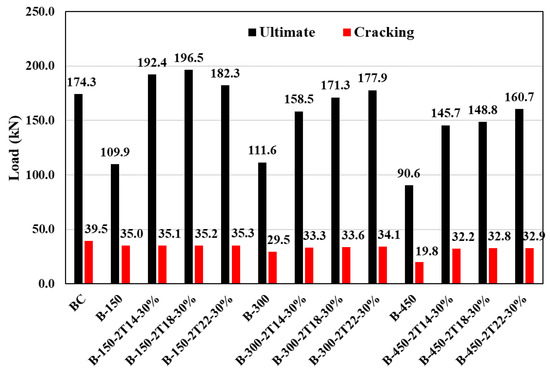 Ultimate and cracking loads for beams with web openings—Effect of pre-stressing level.