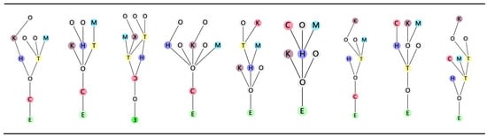 The article also employs the Justified Plan Graph (JPG) as a supplementary illustration to further elucidate the patterns presented in the data [] (pp. 25–28). The JPG serves as a visual representation of the spatial configuration, specifically exploring the relationships between each functional space of the system and every other space. It builds upon the depth graph and further showcases the relationships between various points and the selected points. By utilizing the JPG, the integration of data patterns with real-world scenarios can be presented more intuitively (Table 5 and Table 6).