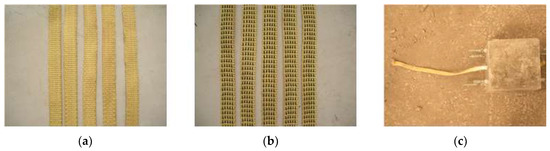 Since aramid fiber and carbon fiber have higher strength, the fiber materials used in this test included aramid fiber (Kevlar49 series) and carbon fiber (T300 series) as raw materials, and the continuous fiber raw filaments were braided into fiber-belt-bars using plain weave, as shown in Figure 1a, b. The specific dimensions of fiber-belt-bars and raw materials are shown in Table 1. AF—aramid fiber; HACF—aramid fiber and carbon fiber hybrid weave; K49—aramid fiber (Kevlar49 series); 1—cross-sectional size of 12 mm × 3 mm; 2—cross-sectional size of 20 mm × 3 mm. Tensile tests were performed for the same batch of fiber-belt-bars employed in the pullout specimens. The tensile strength, elastic model, and elongation of the fiber-belt-bars can be obtained as shown in Table 2.