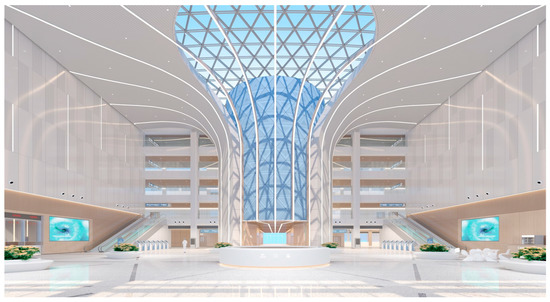Third, the irregular surface structure is highly complex. The use of this complex curve design is mainly for aesthetic reasons, but it also leads to difficulties in the expression of the structure design and construction. As noted from Figure 4, the partial form of the roof of the medical technology building is sophisticated, where a double-layer grid structure with numerous nodes and complicated spatial relationships was adopted. The traditional design method presented by CAD 2D drawings cannot address the design concepts, so it is essential to use BIM to combine structural design with architectural aesthetics.