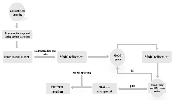 Ref. [14] proposed a BIM-based system to improve the efficiency of collaborative design by addressing a variety of extant problems, such as the loss of data, communication barriers, and poor work efficiency within the context of a hospital project. Additionally, there were also extensive studies focusing on the field application of BIM during construction. The rationality of doing so is because design collisions and changes are common problematic issues delaying the construction and depressing project quality. Efficient coordination between design and construction is therefore needed to ensure that information is fully accessible and exchangeable among all stakeholders over the construction process [16,17]. With this perspective, Ref. [19] identified an innovative ‘site BIM’ system that enables on-site workers to use mobile tablet or personal computers to access design information to ensure work quality.