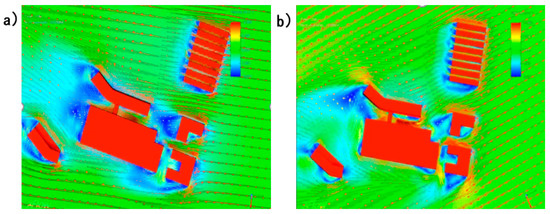 The simulation results of the wind environment of the hospital: (a) summer, (b) winter.