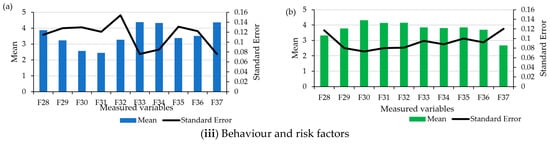 The Cronbach’s alpha coefficient is an evaluation instrument that is utilised for assessing internal consistency. It provides an indication of the degree to which the individual items that make up a scale or test are assessing the same underlying construct. The value of Cronbach’s alpha can be determined by conducting an analysis of the intercorrelations amongst the items that make up a scale. It can take on values between 0 and 1, with higher values signifying a greater degree of internal consistency. For the purposes of research, an acceptable value is considered to be one that is at or above 0.7, while a number that is at or above 0.8 is considered to be good. Statistical software programs such as R, SAS, and SPSS can be utilised in order to compute Cronbach’s alpha, but the latter (SPSS v27) was utilised in this study. These software solutions offer the necessary capabilities for calculating Cronbach’s alpha from the item responses, which are scored from the sampled participants in the study. Other measures of internal consistency include the Spearman–Brown coefficient, which estimates the hypothetical reliability of a scale if its length were to be increased or decreased, and the split-half reliability coefficient, which involves splitting the items in a scale into two halves and assessing the correlation between them. Although the questionnaire was subjected to other forms of internal consistency testing, the Cronbach’s alpha test was utilised in this study. This is because the Cronbach’s alpha test is widely used and recognised as a reliable and valid measure of internal consistency [82,83,84,85,86]. As a result, it is the go-to test instrument for examining the reliability of scales or tests in numerous disciplines of study and measurement.