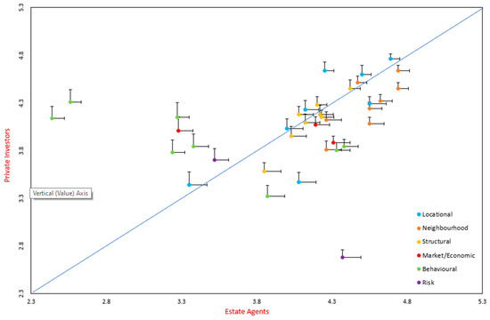 This study investigated the factors that influence residential property investment decisions using a survey of flood-risk areas in the Lagos metropolis. The estate agents were asked questions regarding their knowledge of flood risk and the factors that they believed influenced the private investors’ decisions whenever they decided to own or rent properties, while the private investors were asked questions on what factors they considered as influencing their decisions to invest. This study performed the Cronbach’s alpha test to ensure that the questionnaire items (data) were internally consistent, metrically reliable, and valid. The Cronbach’s alpha values obtained for private investors’ and estate agents’ (Table 1) responses in this study demonstrate that the questionnaire items are consistent, reliable, and valid.