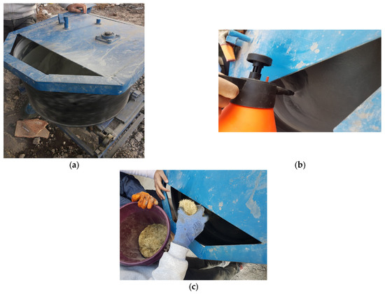 (a) Mixer, (b) Gradual addition of water, and (c) Gradual addition of steel fibres.