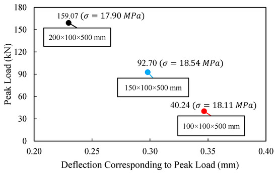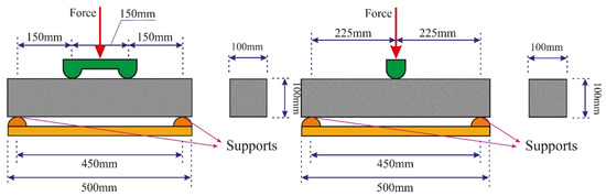 Regulations of ASTM C1609/C1609M [57] were adopted to apply flexural loading to eight UHPFRC beams with dimensions of 100 × 100 × 500 mm (clear span: 450 mm), as shown in Figure 4. Linear variable displacement transducers (LVDT) were used to monitor deflection values. The average value of the load-deflection response was presented in this study.
