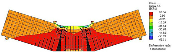 Stress contour for the 100 × 100 × 500 mm beam with = 14 MPa.
