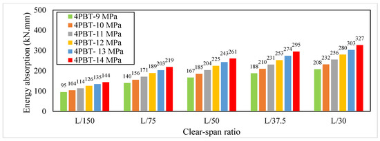 - Size variations led to significant changes in the response of the beams, with the energy absorption being the most sensitive to the changes. Doubling the effective depth led to an improvement of 295% in the load capacity, while doubling the overall dimensions led to an increase of 280%.