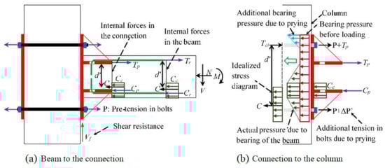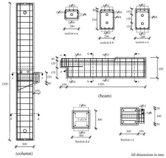 Some researchers [13,14,15] have tested corbel-connected beam–column joints, and used lap-splice bars to connect the T-section beam and column, as illustrated in Figure 8. The experimental results showed that the potential plastic hinge was formed at the beam ends near the column faces, preventing the failures of the column and joint. Post-tension rebars could enhance the connection strengths and stiffnesses under the cyclic inelastic loads that simulated ground excitations during earthquakes.