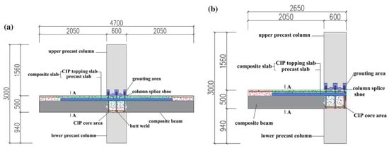 Joints for different types of buildings proposed by Nzabonimpa et al. (reprinted from [7]). (a) Construction of reinforced concrete buildings, (b) construction of composite steel–concrete buildings.