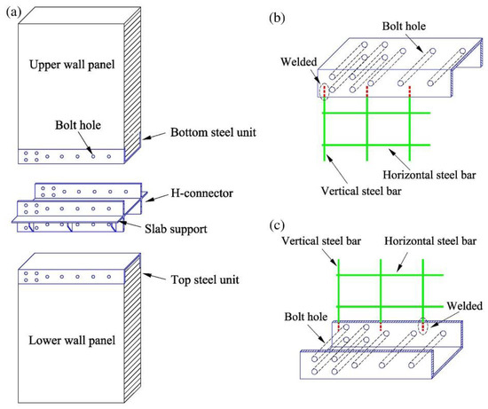 - Sun, J.; Qiu, H.; Jiang, H. Experimental study and associated mechanism analysis of horizontal bolted connections involved in a precast concrete shear wall system. Struct. Concr. 2019, 20, 282–295. [Google Scholar] [CrossRef]