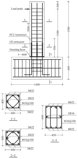 - Xu, L.; Pan, J.; Guo, L. Mechanical performance of precast RC columns with grouted sleeve connections. Eng. Struct. 2022, 252, 113654. [Google Scholar] [CrossRef]