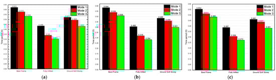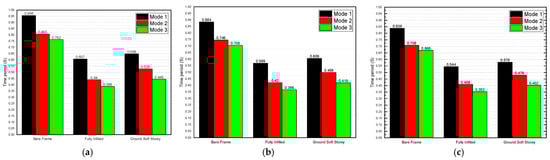 Time period: (a) bare frame; (b) fully infilled; and (c) ground soft story.