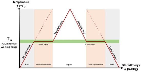T-h diagram of Solid-liquid and Liquid-solid phase change transition of PCMs, reproduced with permission of [30], Elsevier, 2020.
