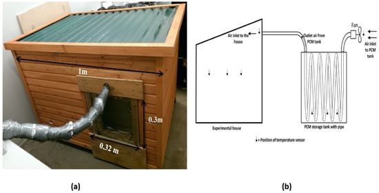 Vincenc Butala and Uros Stritih [85] experimentally measured inlet and outlet air temperatures and airflow for seven days to test the cooling effectiveness of a thermal buffer filled with PCM, as shown in Figure 9. The findings indicated that airflows greater than 1.5 m/s and incoming air temperatures below 30 °C were incompatible with the buffer’s length.