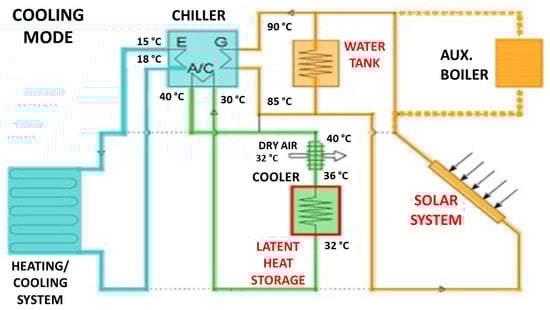 The placement of the storage tank for PCM in the context of solar cooling, reproduced with permission of [115], Elsevier, 2014.