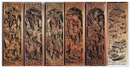 Art is sustainable, although the ancient myths and legends are far removed from modern life. Although people in modern society may pursue high-tech and materialistic living environments, the spiritual guidance represented by the Hui-style carving is more precious. Zhao et al. [] show a significant positive correlation between four influencing factors: the cultural ecology of natural, social and economic development, policies and institutions, transportation, and income, and the interaction between tourism and aesthetics, and the propensity to inherit traditional crafts. Additionally, as a reference, the Hui-style carving can also be copied and utilized in the modern architecture to add some senses of history and humanity.