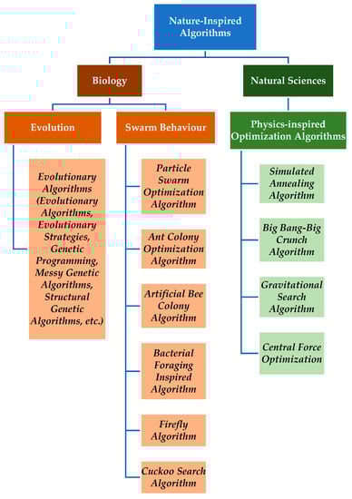 A summary of the nature-inspired algorithms divided by category, modified from the original scheme of Fister Jr. et al. [