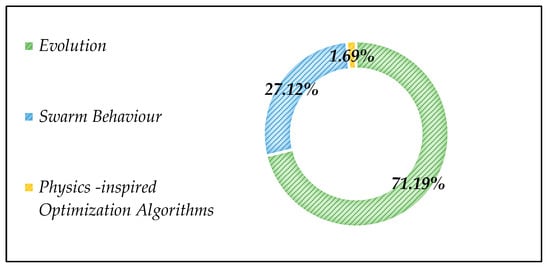 Table 1. By grouping the research results into three different macro-groups that refer to biology-inspired algorithms and other hybrid methodologies of optimization algorithms (physics-inspired), there is a clear preponderance of evolutionary algorithms in the literature (see