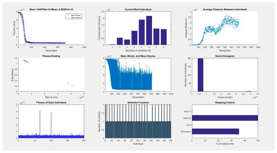 Regarding the GA implementation, in the Matlab software, numerous iterations were performed, changing in several iterative cycles, one by one, the constraints and model key parameters, directing the process towards the minimization of the sum of squared residuals. Data processing allowed us to determine the genetic code able to generate the optimal solution.