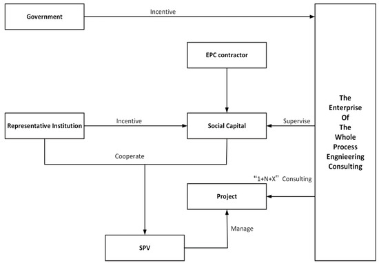 Relationships among Participants in the ‘PPP + EPC + Whole-Process Engineering Consulting Company’ Mode.