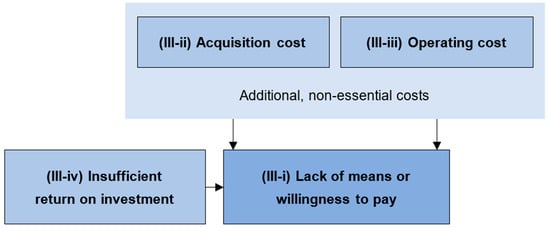 Figure 6. (IV) Practical-technical (fully colored) and environmental barriers (shaded).