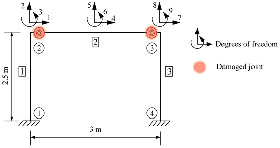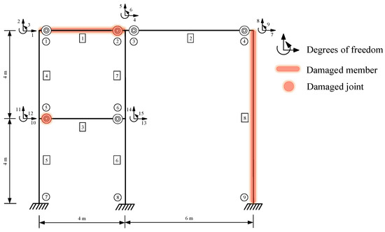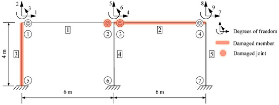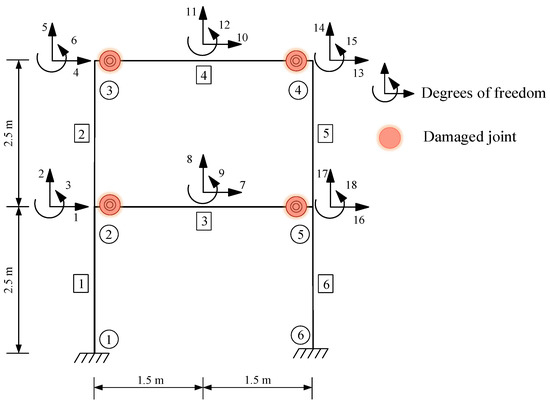 The connections are the critical locations where damage commonly occurs. Bolt looseness or corrosion, as well as accidental loads such as seismic loads, will damage the joints of semi-rigid frame structures [50,51]. For this purpose, this section focuses on joint damage identification for semi-rigid steel frames with slender beams.