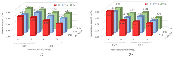 Flexural (a) and compressive (b) strength studied in the first experimental phase.