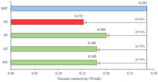 - As for the physical properties of the new material developed, it has been verified that the plaster material lightened with perlite and potassium polyacrylate (NF) has a thermal conductivity coefficient 46.63% lower than traditional plasters (REF). This decrease in thermal conductivity is attributed to a 10.44% reduction in the density of the plaster compound produced compared to the reference plaster E0.7.