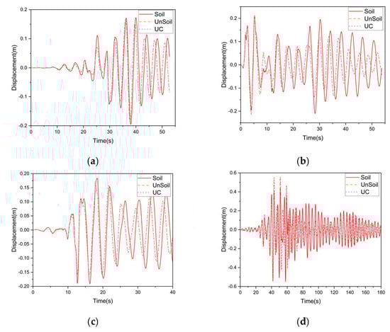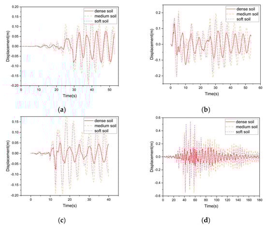 4.2. Displacement Frequency Response under Different Mass Ratios Considering Soil-Structure Interaction